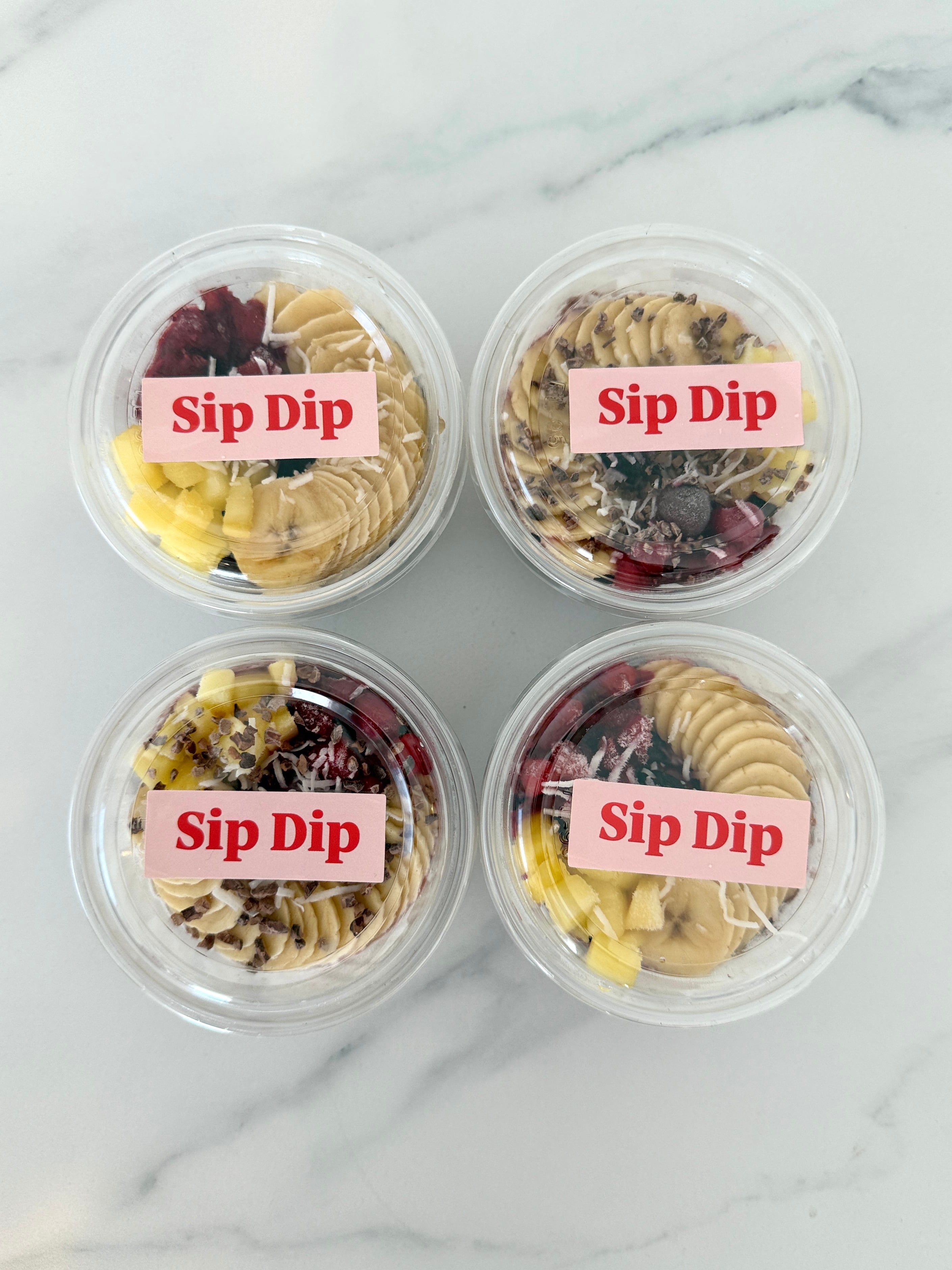 当店Sip Dipでは、ジュースや白砂糖を一切使わず、高純度のアサイーペーストのみを使用。グルテンフリーで安心・安全、素材そのものの栄養をそのままお届けします。逆さにしても落ちないほど“もったり濃厚”な食感も魅力。自然な甘みとクリーミーな口当たりがクセになる美味しさです。